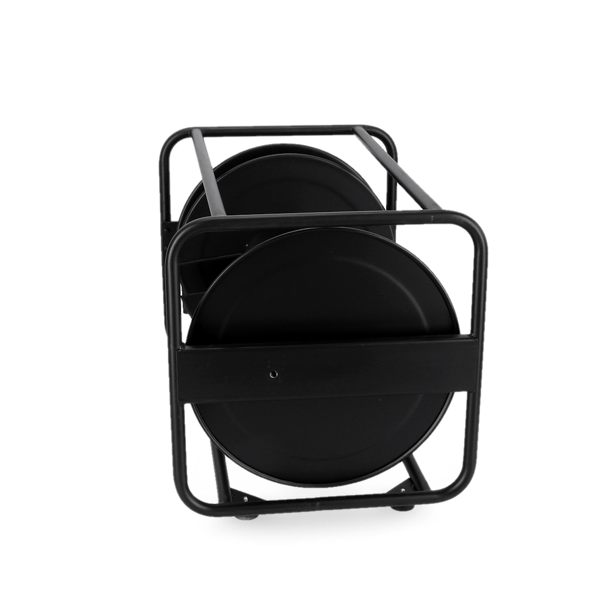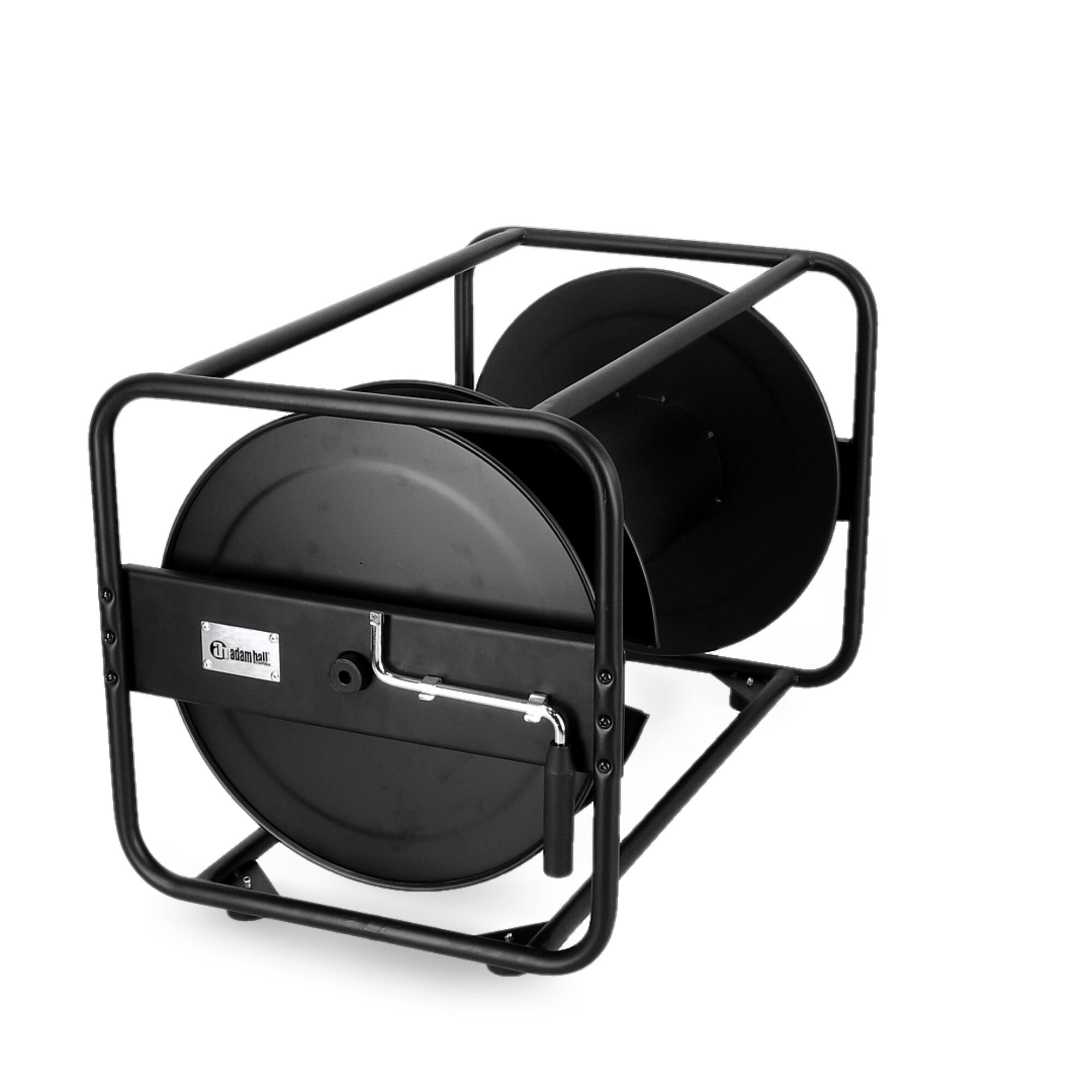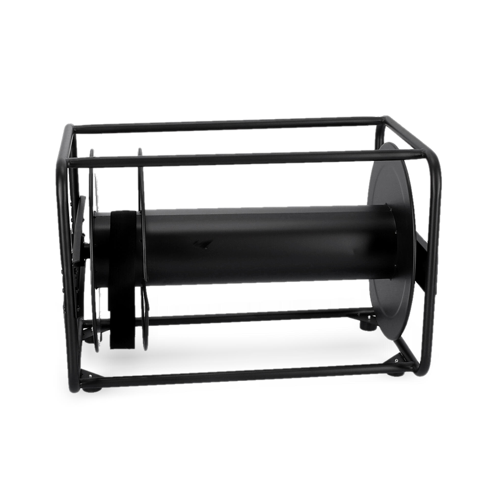 Bęben kablowy z blachy stalowej, czarnej, malowanej proszkowo. Do użytku w przypadku długich kabli o dużych średnicach. Obustronne łożyskowanie osi