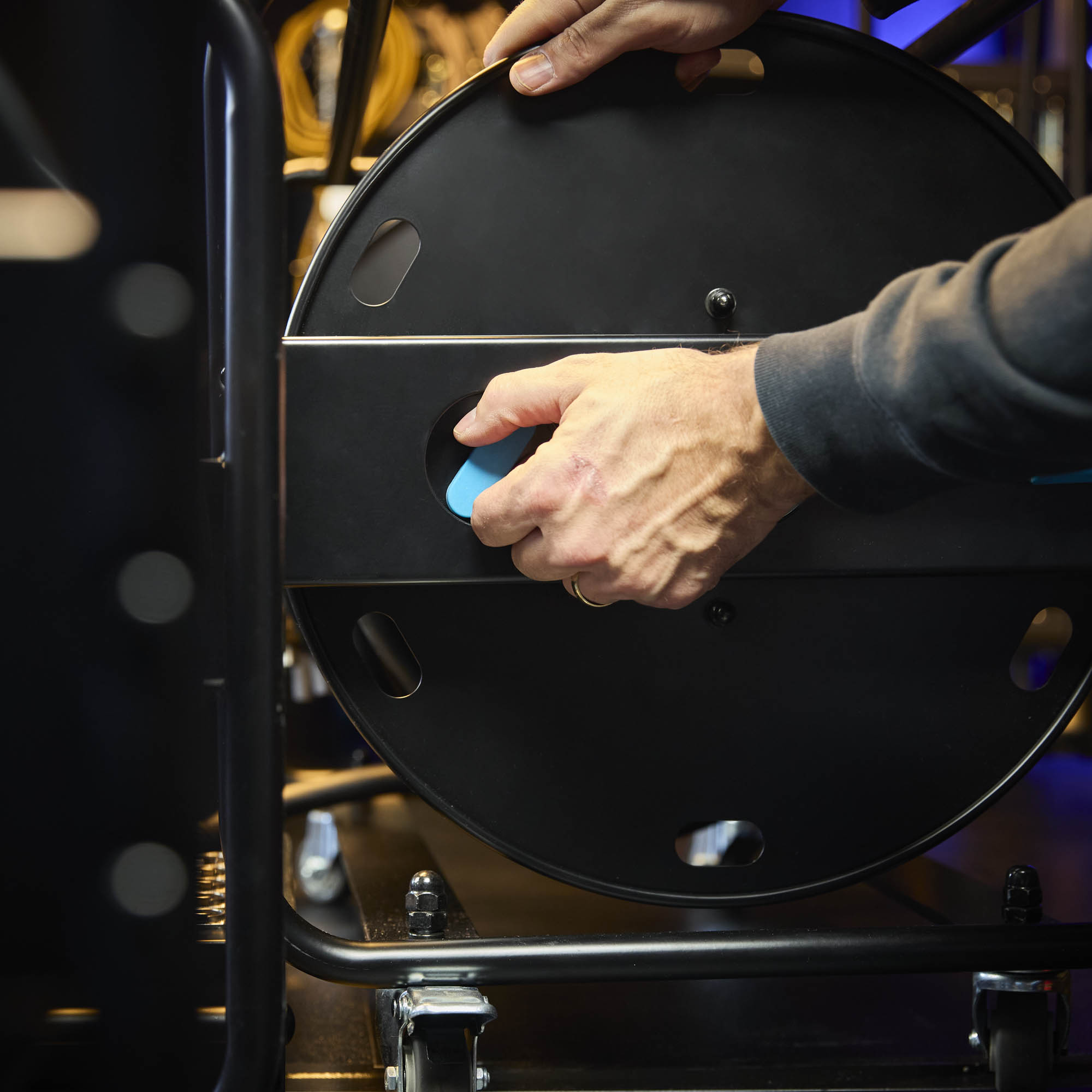 Aby zapobiec ześlizgiwaniu się kabla, stworzyliśmy szczeliny po bokach bębna, umożliwiające przymocowanie kabla za pomocą taśmy z rzepem. Ponadto obrotowy hamulec postojowy zapewnia bezpieczne trzymanie podczas użytkowania.
