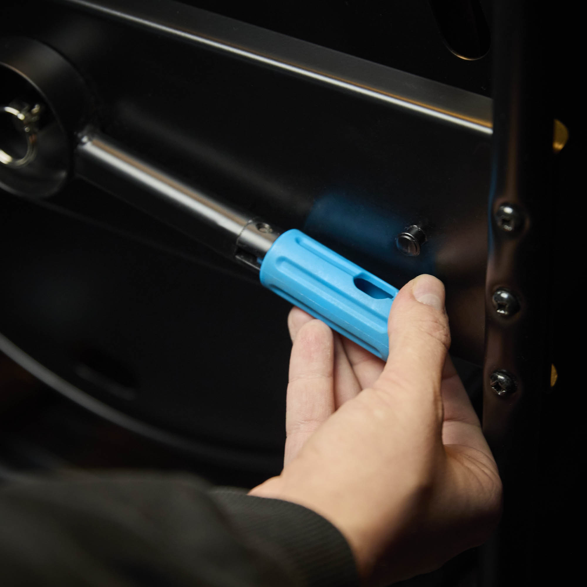 Aby zapobiec ześlizgiwaniu się kabla, stworzyliśmy szczeliny po bokach bębna, umożliwiające przymocowanie kabla za pomocą taśmy z rzepem. Ponadto obrotowy hamulec postojowy zapewnia bezpieczne trzymanie podczas użytkowania.