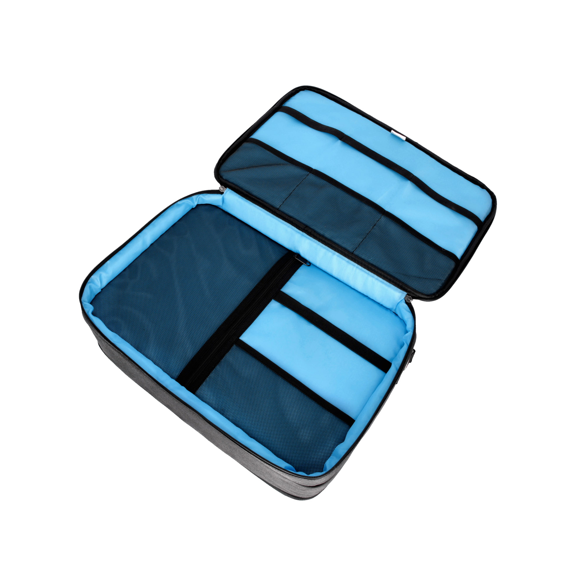 Przednia komora składa się z trzech kieszeni z siatki z gumkami specjalnie na kable i jeszcze jednej na dłuższe kable. Dodatkowo znajduje się zapinana na zamek kieszeń z siatki do przechowywania np. tabletów, tunerów itp. Tył oferuje wystarczająco dużo miejsca na 8 pedałów (takich jak Palmer Pocket Amp), listwy zasilające, a nawet książki muzyczne, multiefekty i power banki. Istnieją tu jedynie przestrzenne granice kreatywności. Dodatkowo, z pomocą dostarczonych przegródek pokojowych, można uzyskać doskonały porządek w swoim repertuarze drobnych elementów.