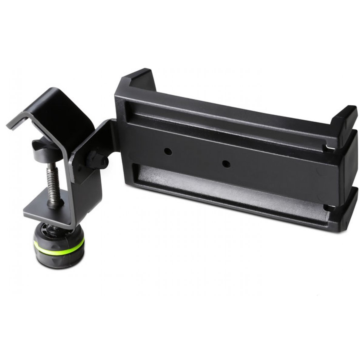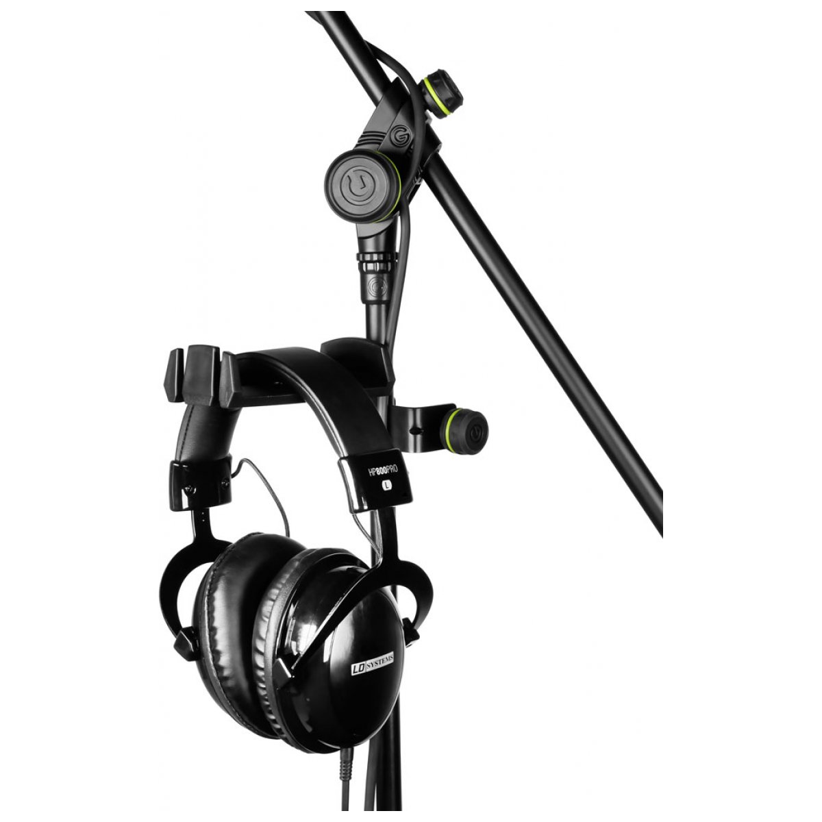 Uchwyt można zamontować na wszystkich statywach mikrofonowych, dzięki czemu słuchawki są zawsze łatwo dostępne. Dwie praktyczne luki służą do uporządkowanego powieszenia kabli połączeniowych, a nakładka śruby zaciskowej wykonana z tworzywa sztucznego chroni przed zarysowaniami.
