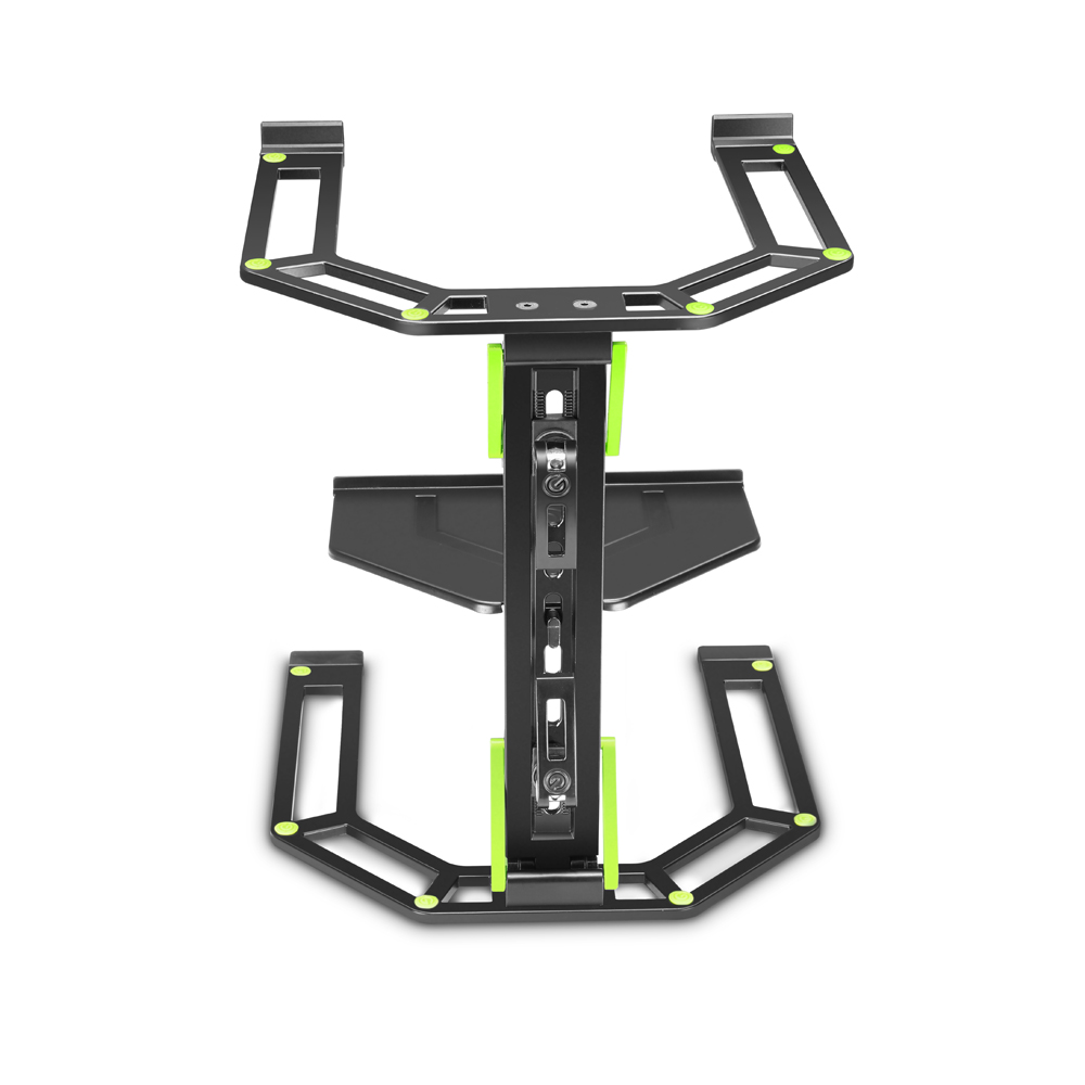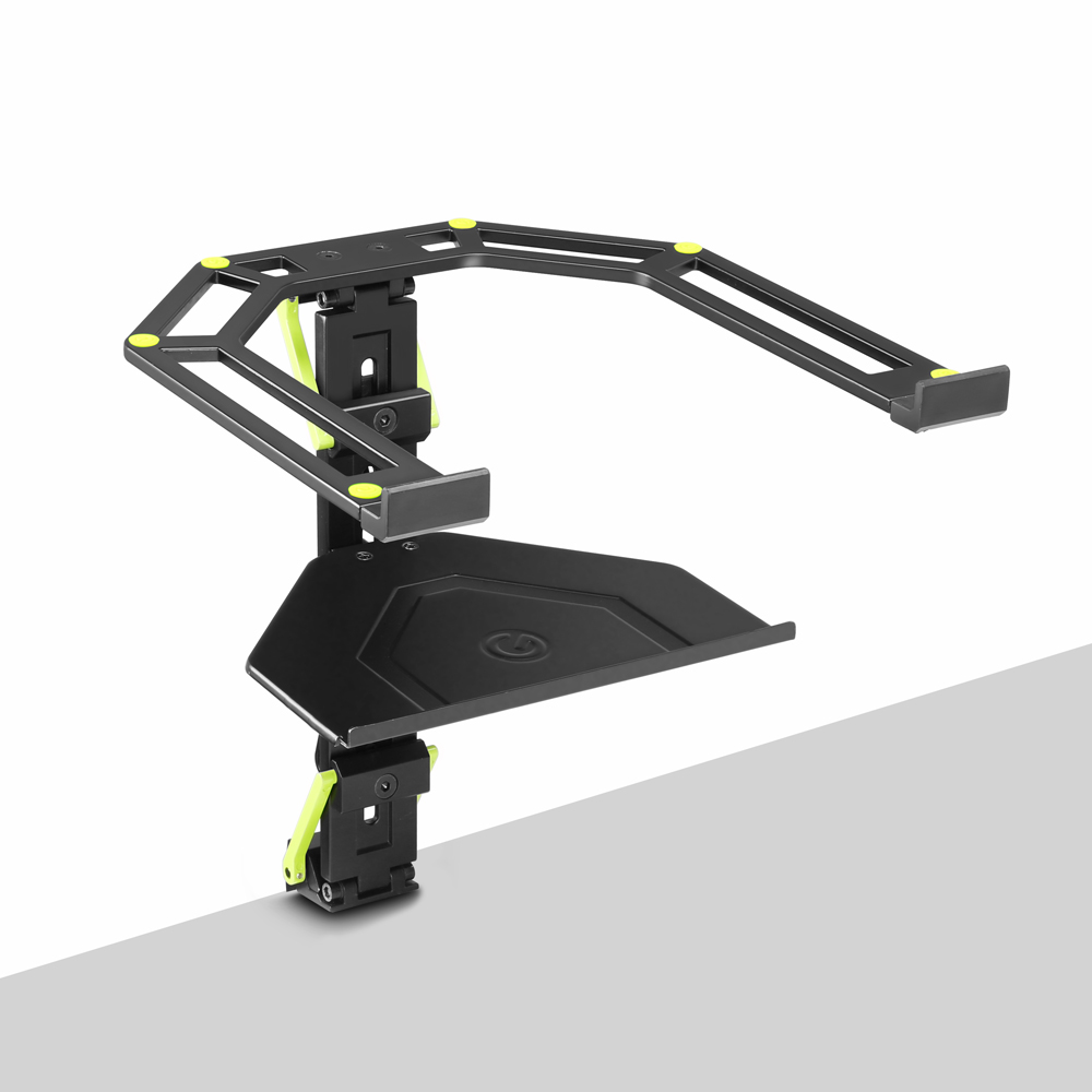 Dzięki rewolucyjnej i opatentowanej konstrukcji ta podstawka pod laptopa oferuje wszystkie zalety, takie jak ekstremalna stabilność, niska waga i wygodny transport. Nadaje się do wszystkich formatów od 12" do 17" i kontrolerów takich jak Launchpad, Maschine lub Push 2. i można go złożyć do kompaktowych rozmiarów w kilka sekund. W celu zapewnienia optymalnej ergonomii, bezpiecznie blokowane zaciski mimośrodowe umożliwiają błyskawiczne przechylenie i zablokowanie tacy i podstawy, a gumowane elementy zapewniają antypoślizgowy uchwyt. Podstawka pod laptopa jest wyposażona w zacisk stołowy i schowek, które są elegancko zamontowane na środkowym wsporniku