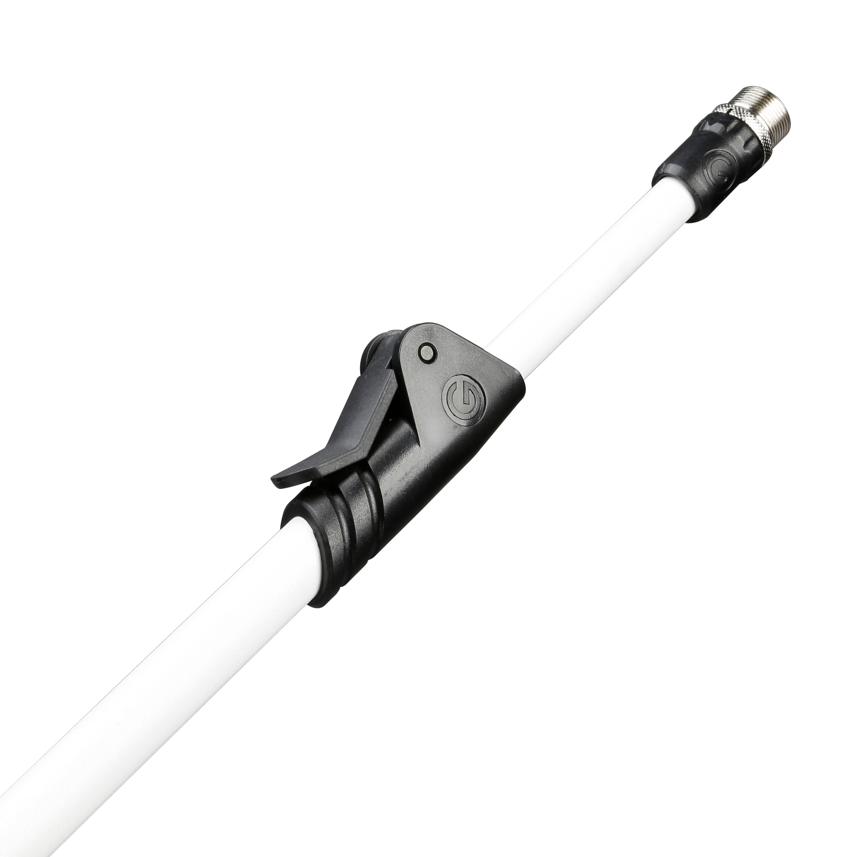 Wysuwany wysięgnik posiada mocowanie z odlewanego ciśnieniowo aluminium z gwintem zewnętrznym 3/8” i dwie śruby naprężające do dokładnej regulacji pozycji i nachylenia. Gałki śrub wykonane są z niezwykle wytrzymałego tworzywa ABS z antypoślizgowym, delikatnym w dotyku obiciem z termoplastiku, zapewniającym komfortowe użytkowanie. Długość wysięgnika można ustawić do maksymalnej wartości 88 cm dzięki praktycznemu mechanizmowi szybkiej blokady, co zapewnia wszechstronność regulacji