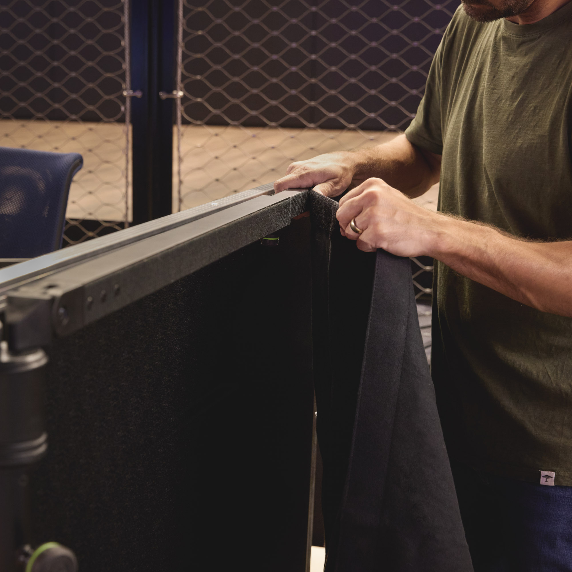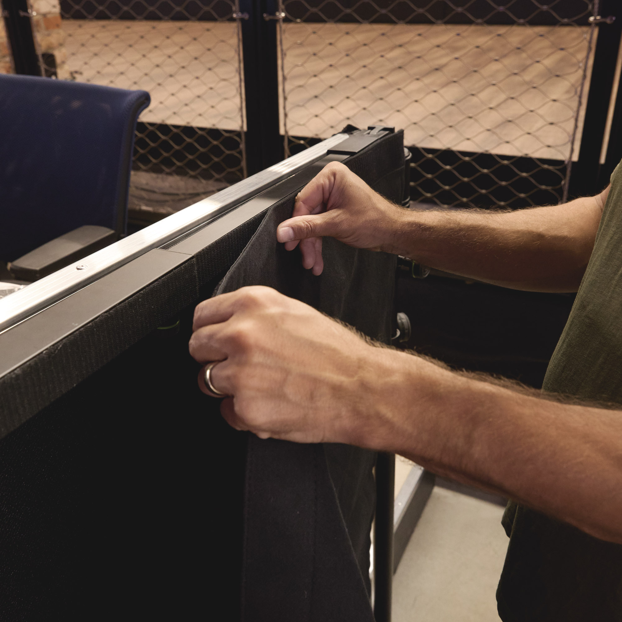 System zasłon kurtynowych Gravity® oferuje maksymalną elastyczność i zdolność adaptacji, płynnie integrując się ze standardowymi statywami 35 mm, oferując indywidualną regulację szerokości i wysokości oraz ułatwiając samodzielną konfigurację bez konieczności korzystania z drabiny. Niezależnie od tego, czy chodzi o małe wydarzenia, czy rozległe targi, system ten bez trudu dostosowuje się do Twoich unikalnych specyfikacji