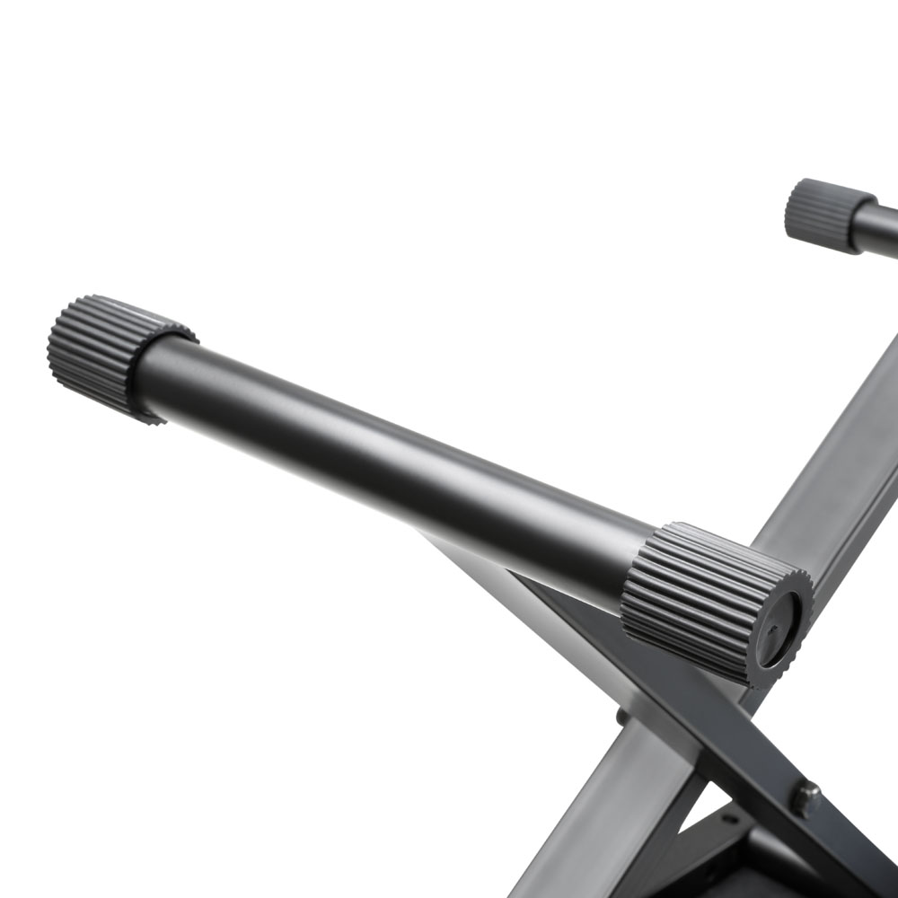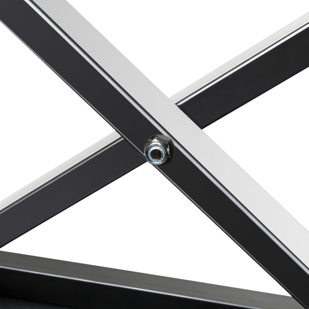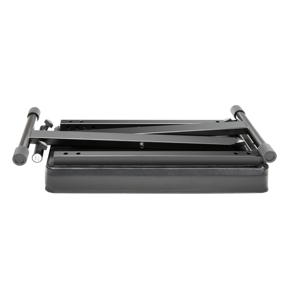 SKT 17 to wyjątkowo wygodna ławeczka do keyboardu. Wymiary zamocowanego do nóżek (w kształcie litery X) siedziska wynoszą 52 cm x 24 cm. Siedzisko jest bardzo grube i tapicerowane. Stabilna konstrukcja ze stali powlekanej proszkowo na czarno umożliw ia regulację wysokości w zakresie od 36 cm do 52 cm. Nóżki posiadają nakładki antypoślizgowe i można je całkowicie złożyć. Dzięki takiemu rozwiązaniu zarówno transport, jak i przechowywanie nie stanowią żadnego problemu