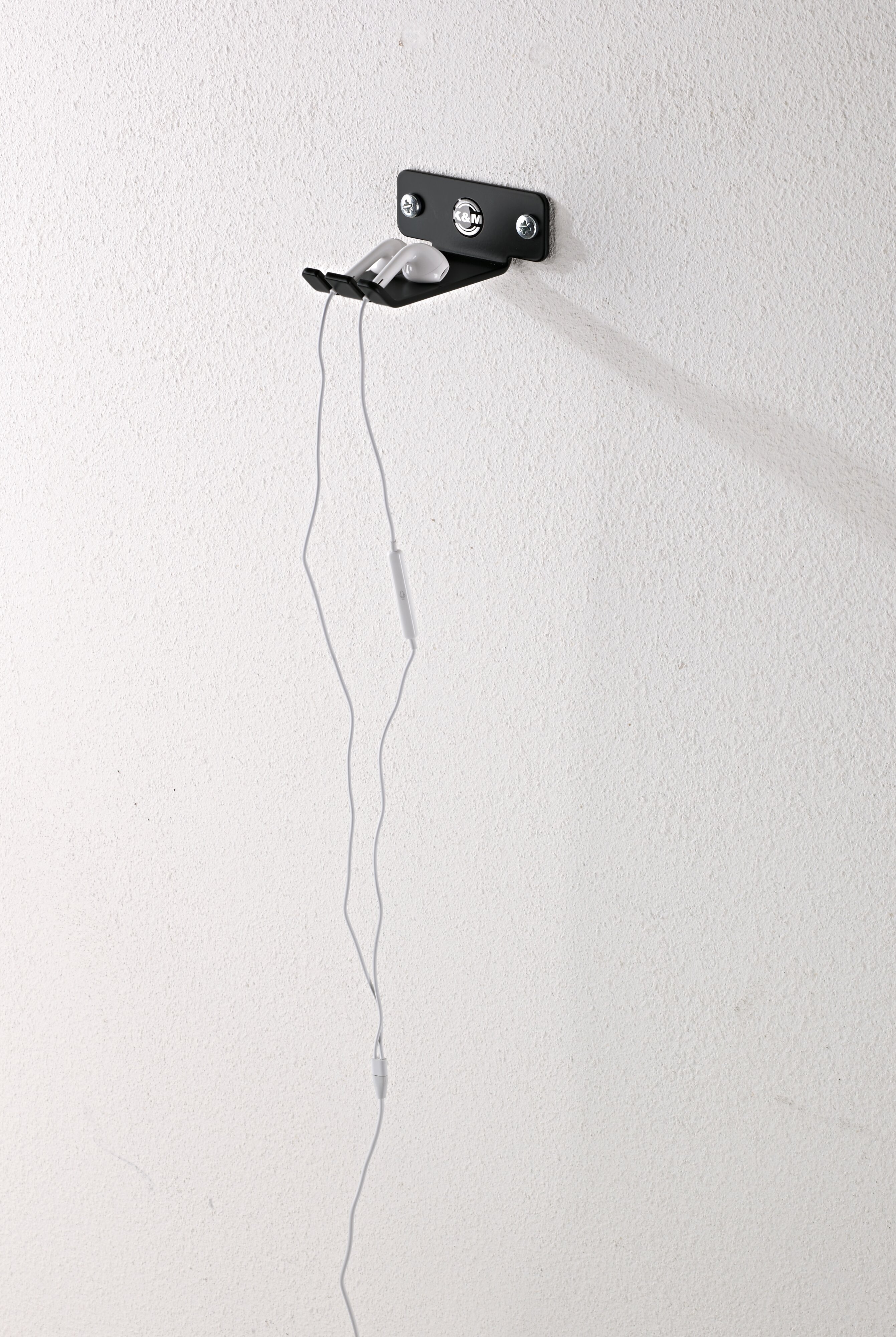 Mały, kompaktowy uchwyt ścienny na słuchawki wykonany z malowanej proszkowo stali. Zapewnia porządek na biurku i sprawia, że ​​słuchawki są zawsze pod ręką. Dodatkowo, w gniazdach z przodu uchwytu można umieścić dwie słuchawki douszne. W zestawie znajdują się śruby i kołki montażowe do montażu uchwytu ściennego na słuchawki