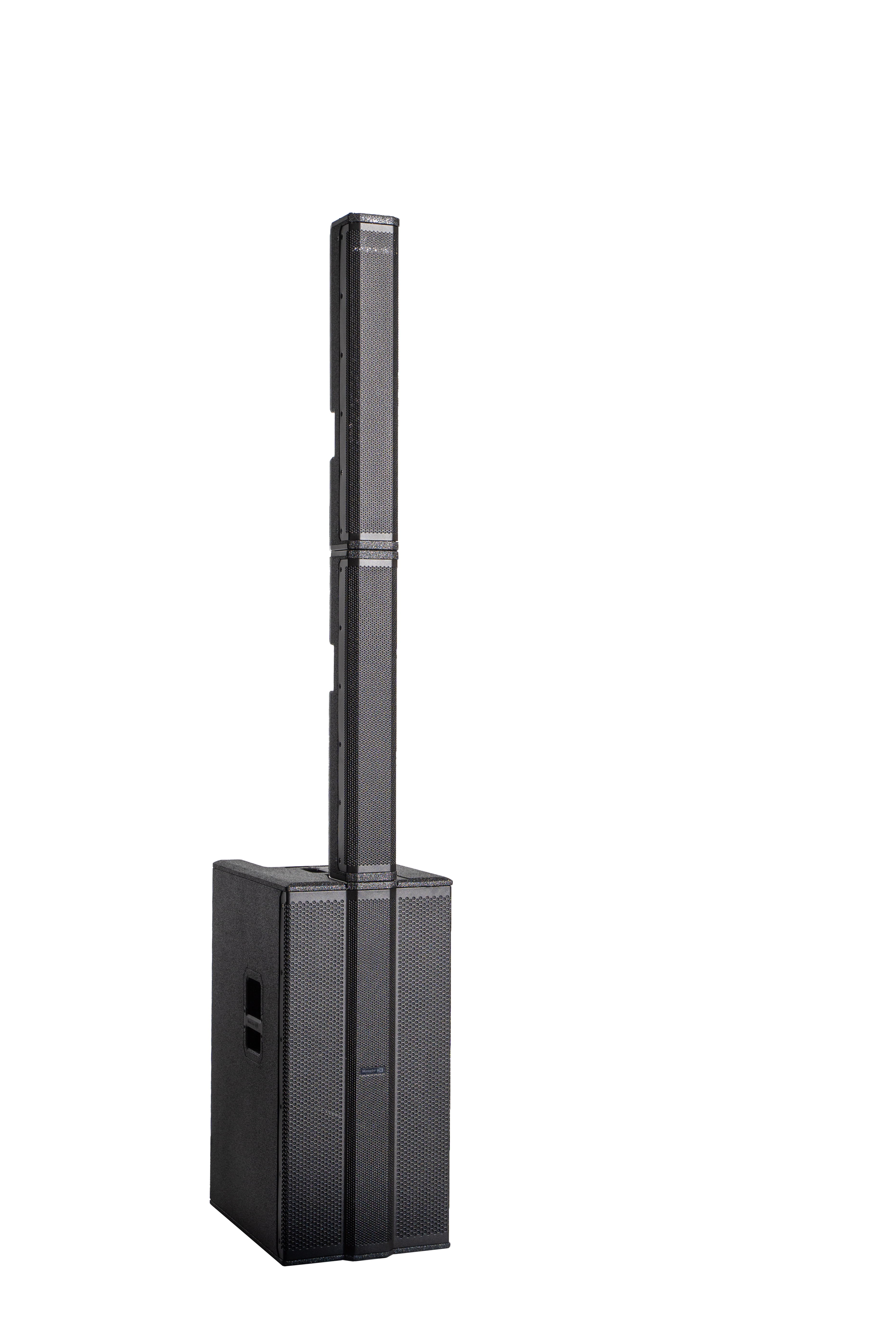 Każdy głośnik top wyposażony jest w sześć pełnopasmowych głośników 3,25" (1" V.C.), starannie zaprojektowanych, aby zapewnić optymalną dyspersję dźwięku z poziomym pokryciem 120°, oraz dwa 12-calowe subwoofery dla sekcji niskotonowej, pozwalające poczuć każdy niuans muzyki.
