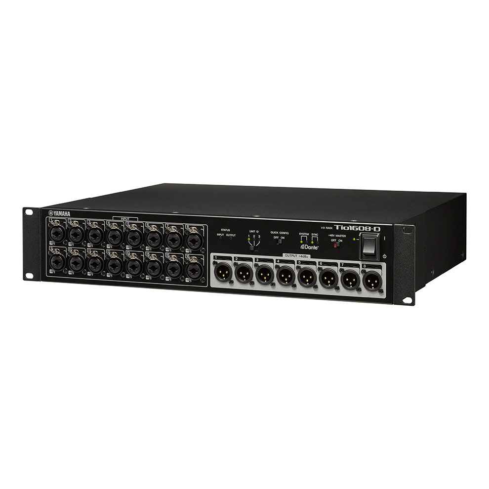 Tio1608-D2 to rack I/O kompatybilny z Dante, wyposażony w 16 wejść mikrofonowych/liniowych i 8 wyjść liniowych. Może zdalnie sterować wzmocnieniem z konsolet serii TF i DM3, umożliwiając budowę prostego systemu stagebox. Wszechstronny Tio1608-D2 obsługuje również 96k, dzięki czemu idealnie nadaje się do wykorzystania jako szafa I/O w dużych instalacjach z produktami takimi jak RIVAGE PM lub DME7